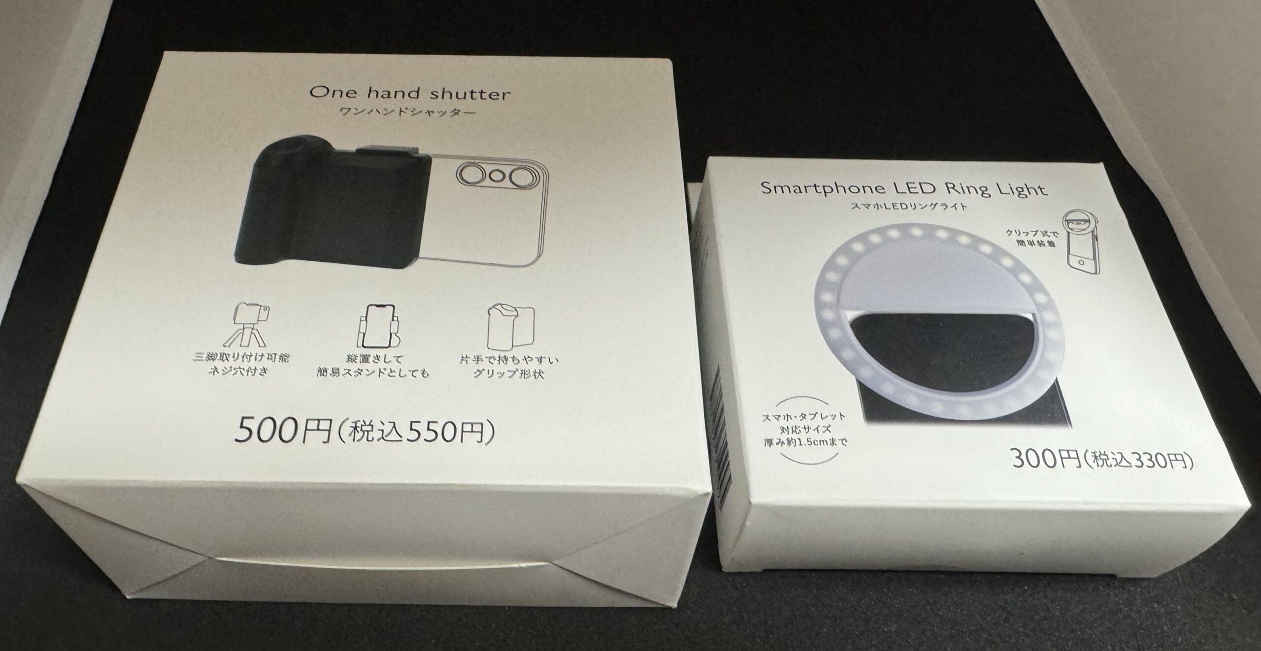 LEDライトが300円、外付けシャッターは500円で電池別売りです。